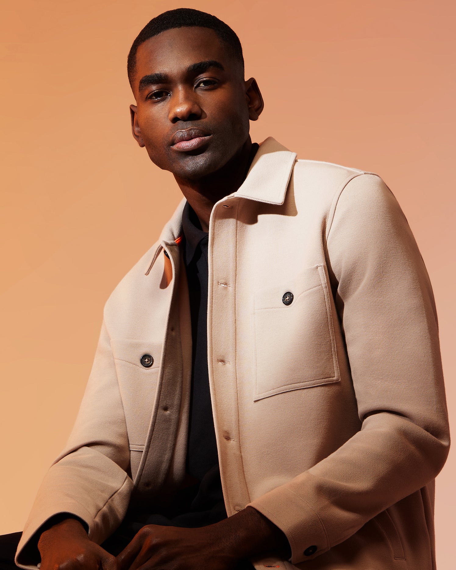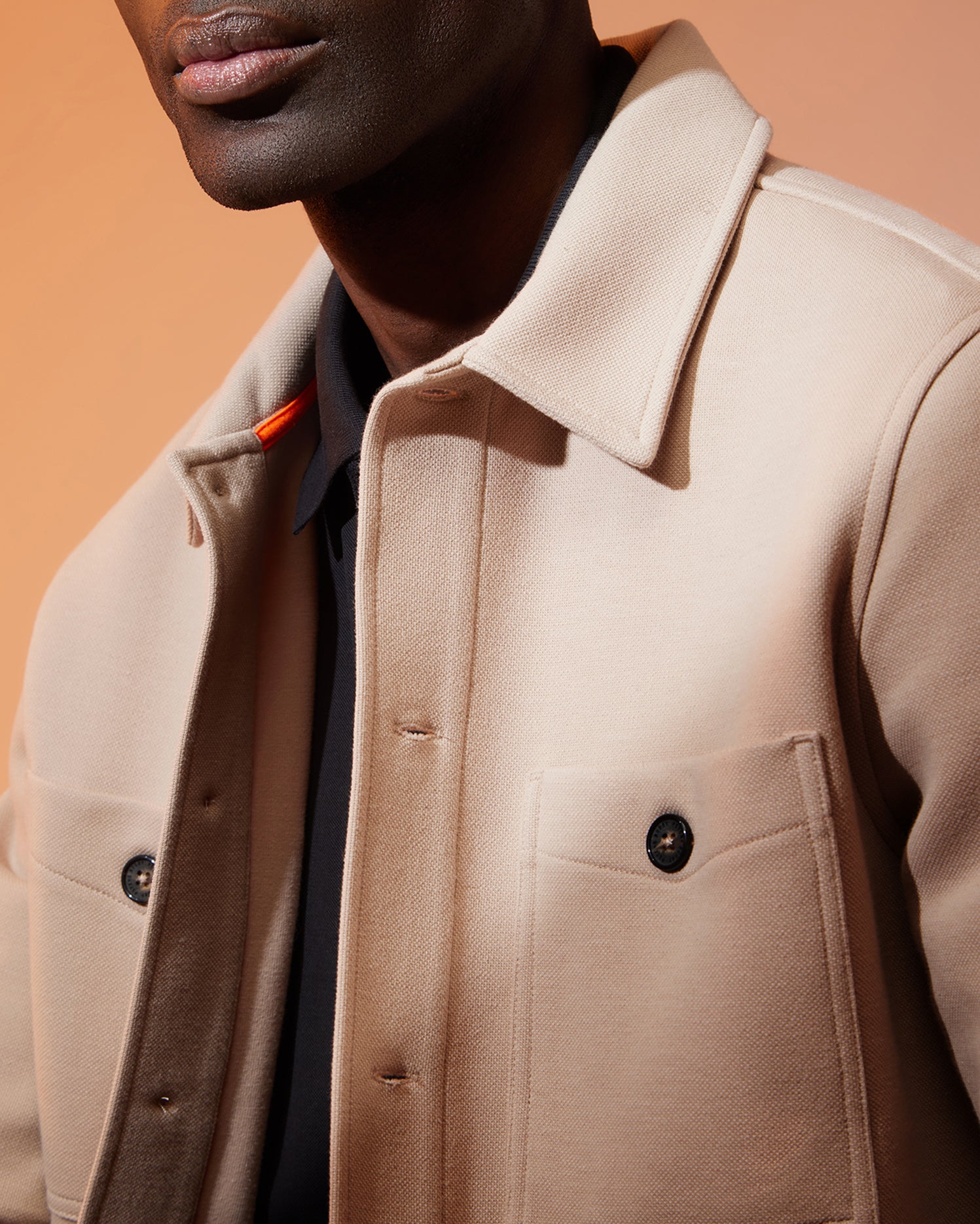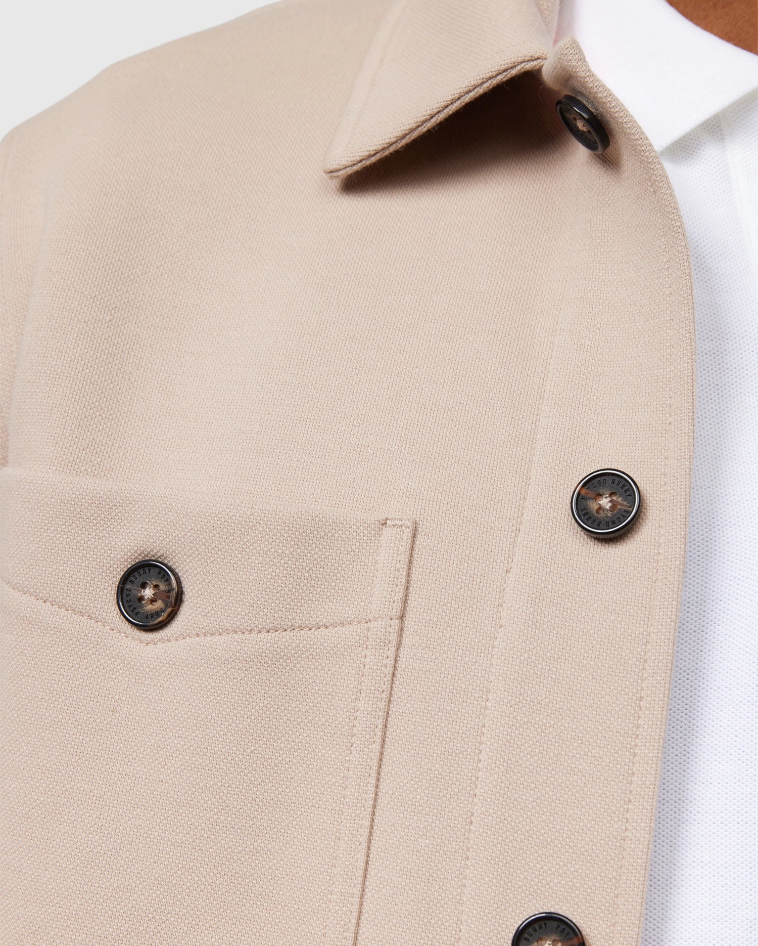 The men's Bedford shirt jacket has an exceptional on-body feel and fit. A contrasting Bunny and stitch detailing, along with logo-engraved buttons and work-jacket style pockets at the front add elevated style.