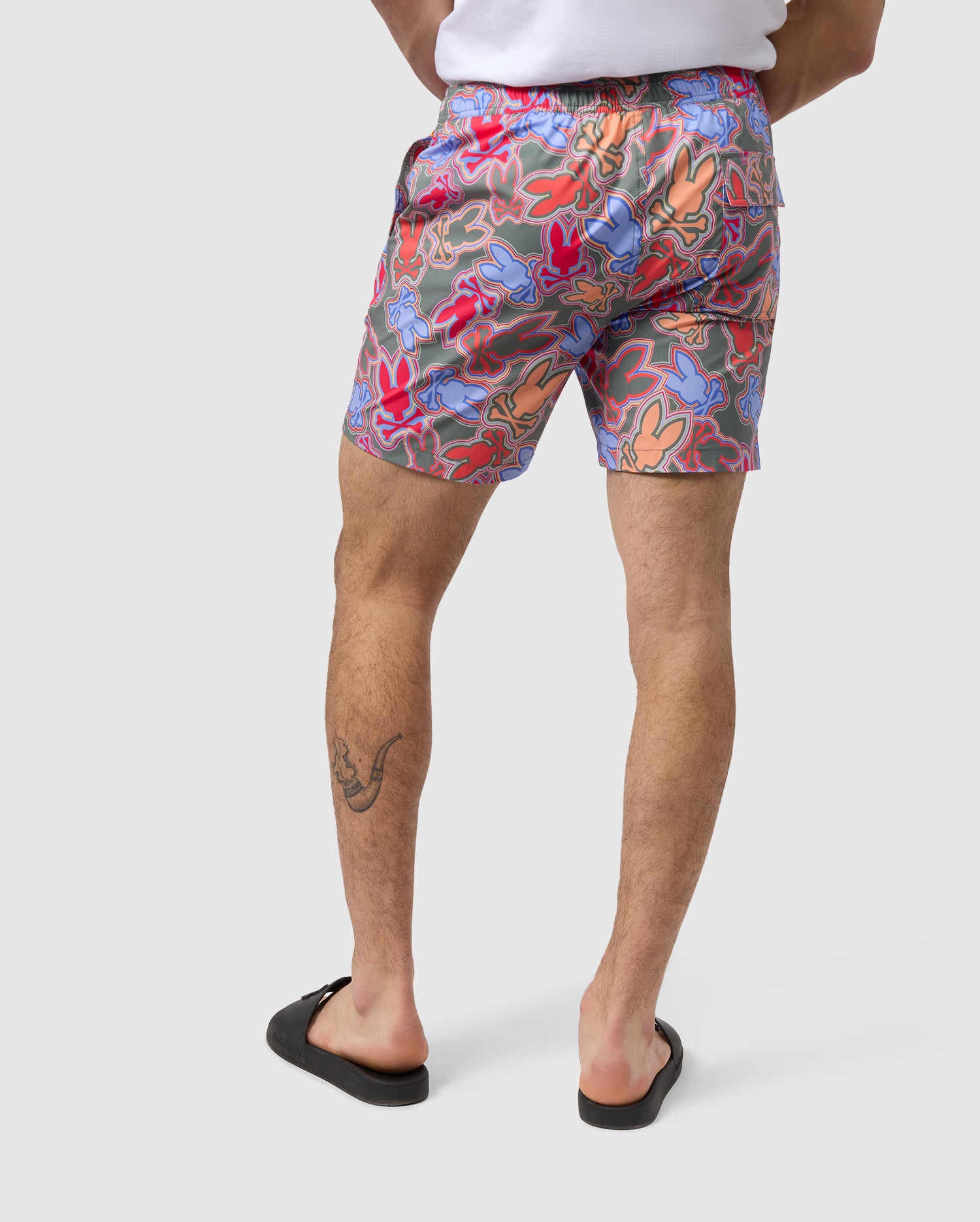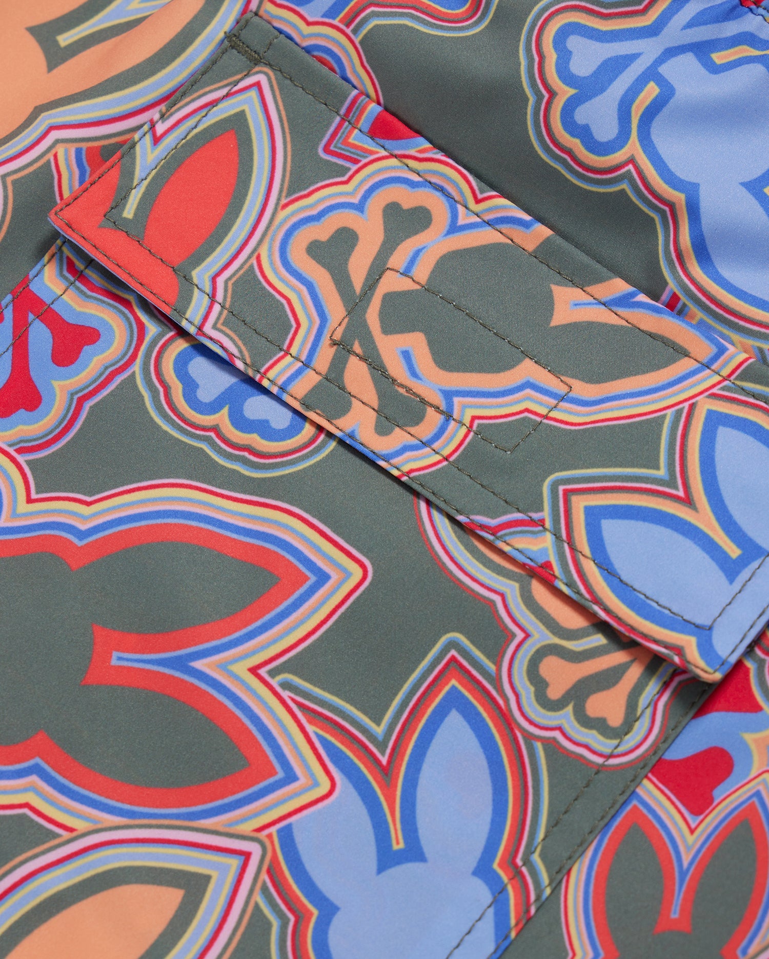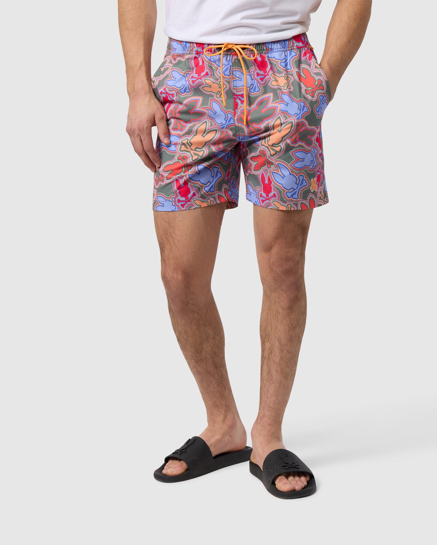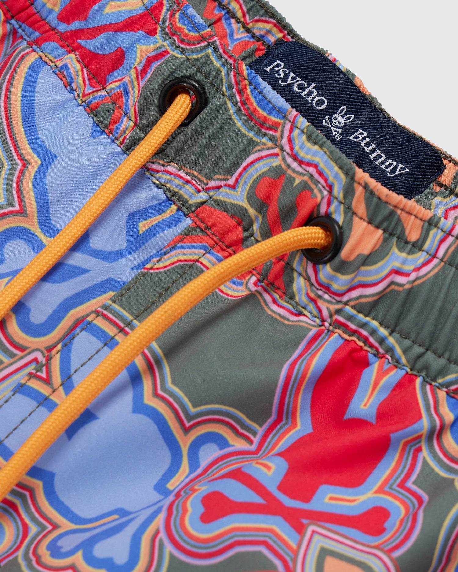 Made from lightweight recycled polyester, the quick-dry men's Jackson swim trunk amalgamates an unexpected array of colors for its graphic-patterned print. Waterproof bag included in back pocket.