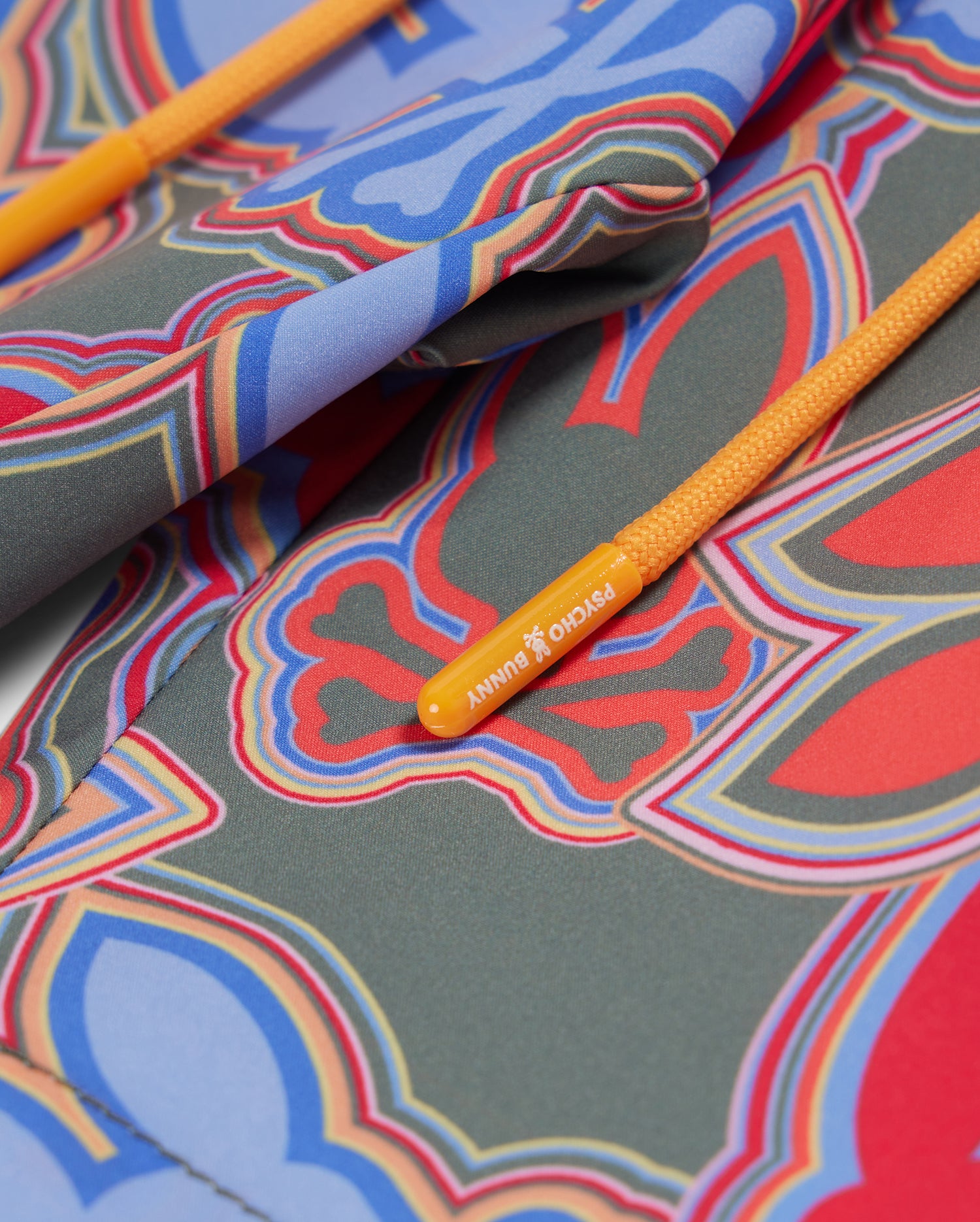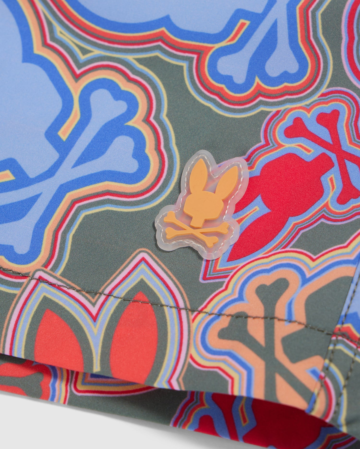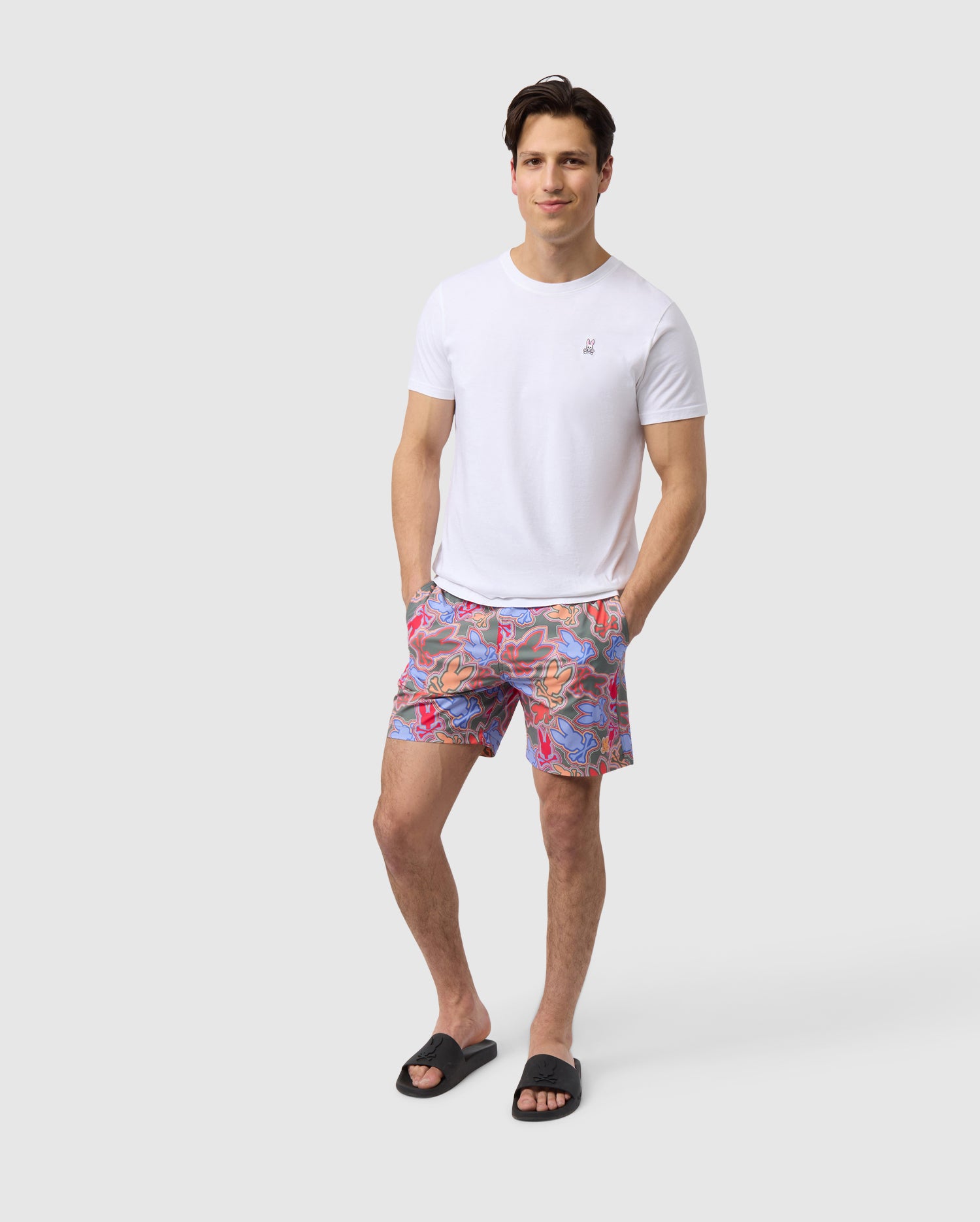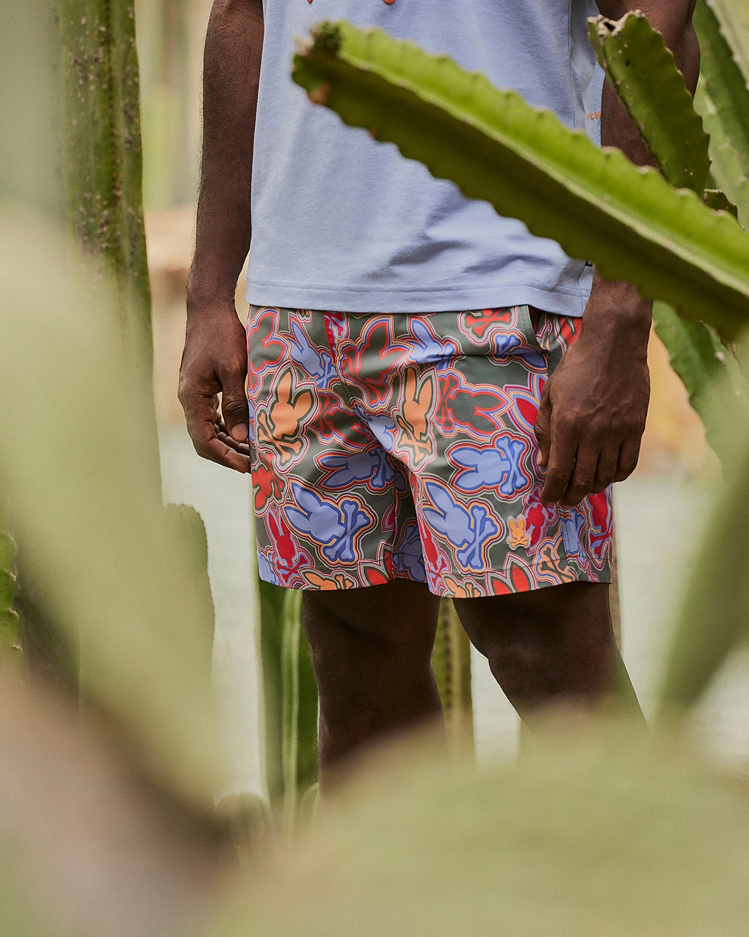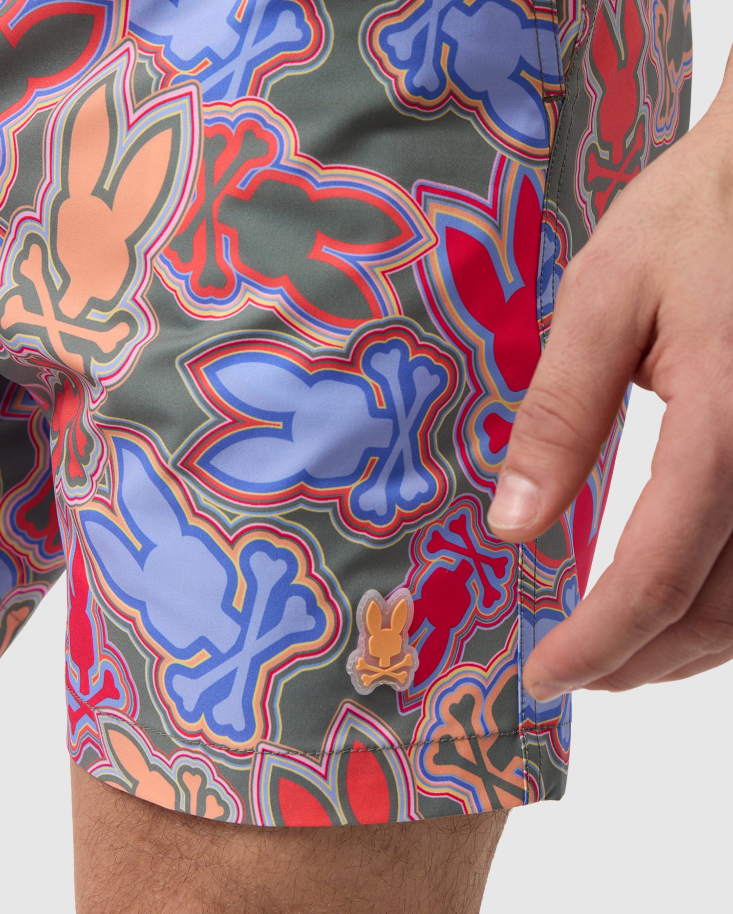 Made from lightweight recycled polyester, the quick-dry men's Jackson swim trunk amalgamates an unexpected array of colors for its graphic-patterned print. Waterproof bag included in back pocket.